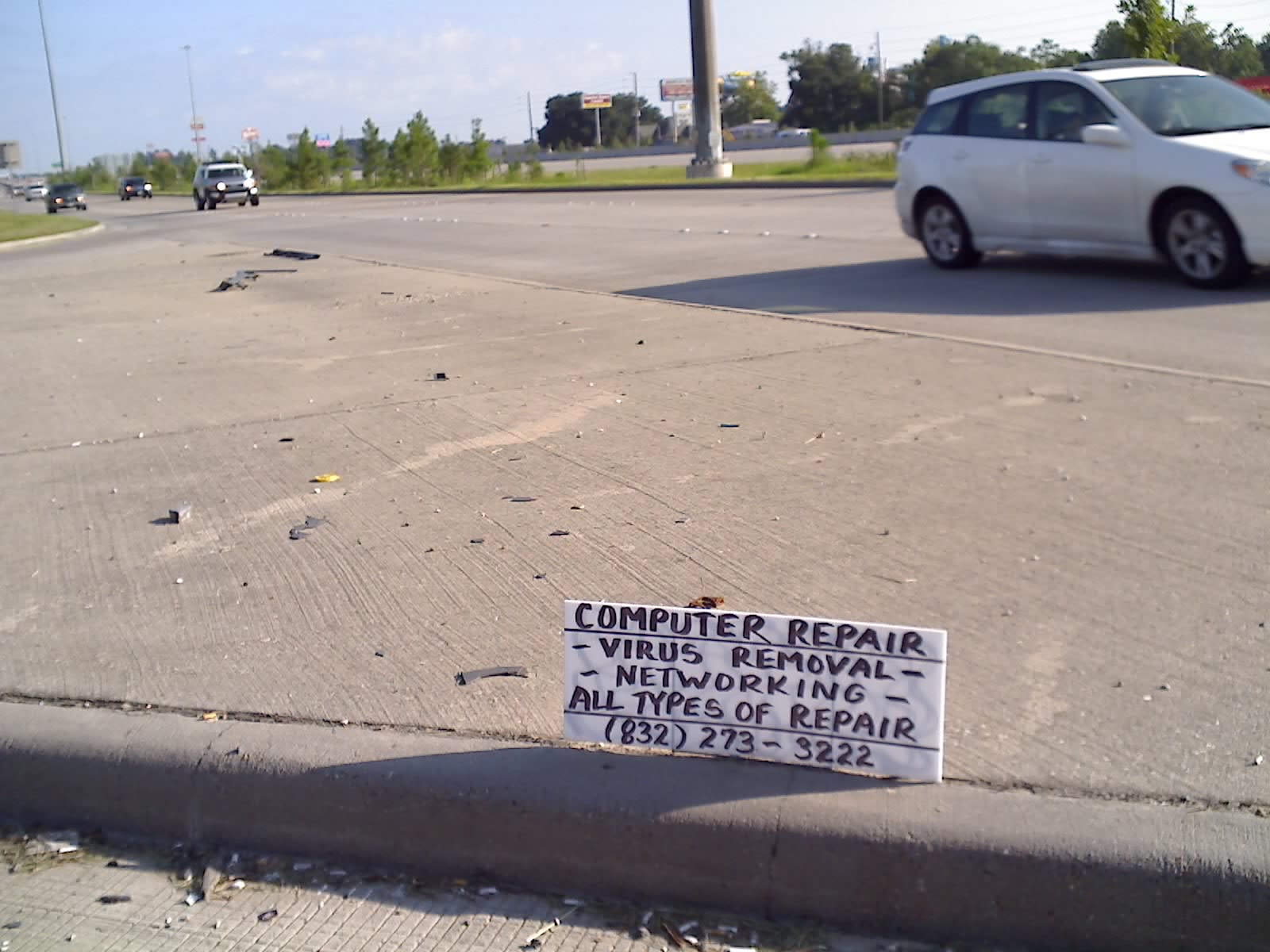 16 September 2007 High tech service – low tech marketing Computer repair marketing on the side of I-45. Share this Twitter Facebook EmailShare Click to share on X (Opens in new window) X Click to share on Facebook (Opens in new window) Facebook Click to email a link to a friend (Opens in new window) Email Like Loading... Related