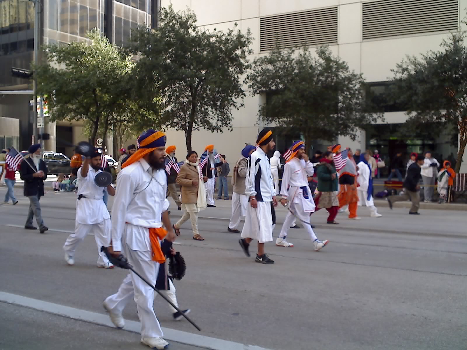 The Sikhism in America group turned up to march in the Downtown Houston Thanksgiving Day parade. I guess they were running on IST (Indian Standard Time) since they were the very last procession marching behind Santa and his sleigh.
