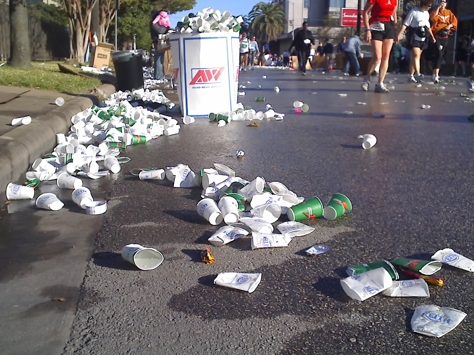 9:21am All athletes should be required to dispose of their paper cups and trash in bins, not on the street.