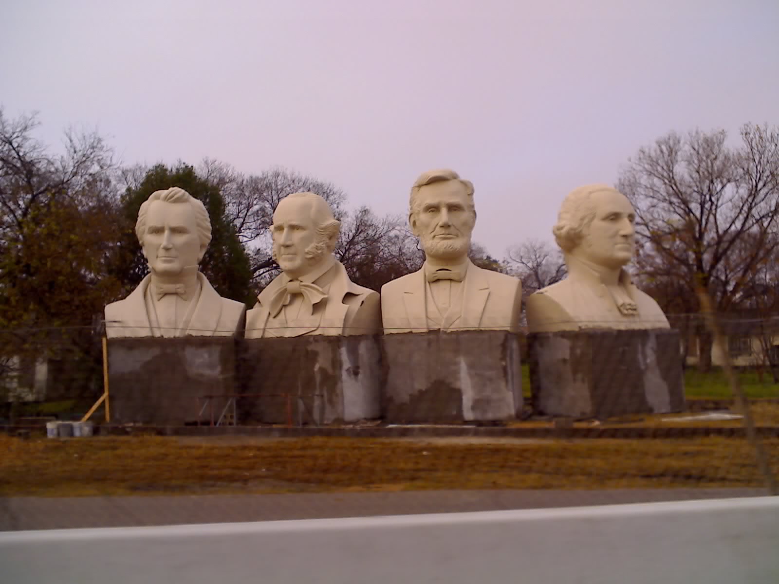 Four of the presidents heads created by David Adickes have sprung up along I-10 just West of Downtown. Looks like Honorable Abe, Washington and two others I don’t recognize?