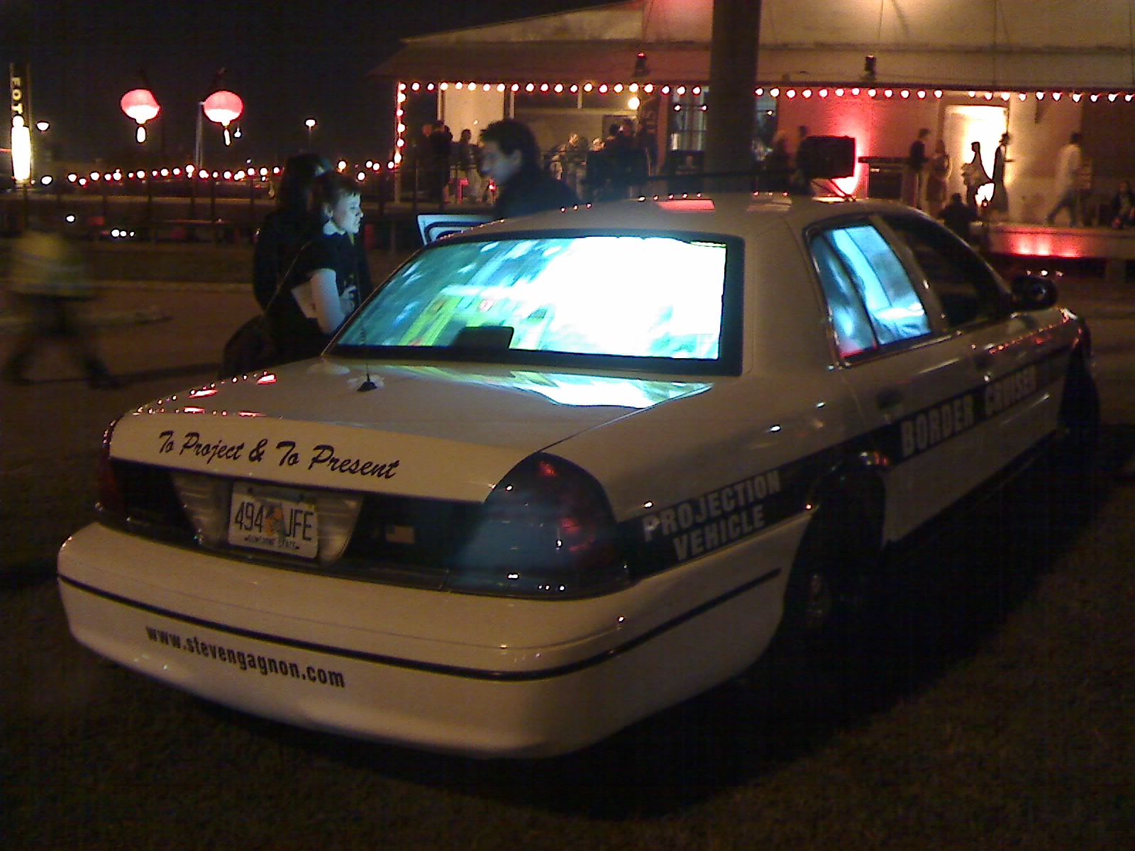 Ever wonder what those guys went through to get into the the States, the ones standing outside of the Home Depot- in the parking lots. Check out Steven Gagnon’s projection vehicle which highlights the trials of illegal immigrants journeys on its rear windows.