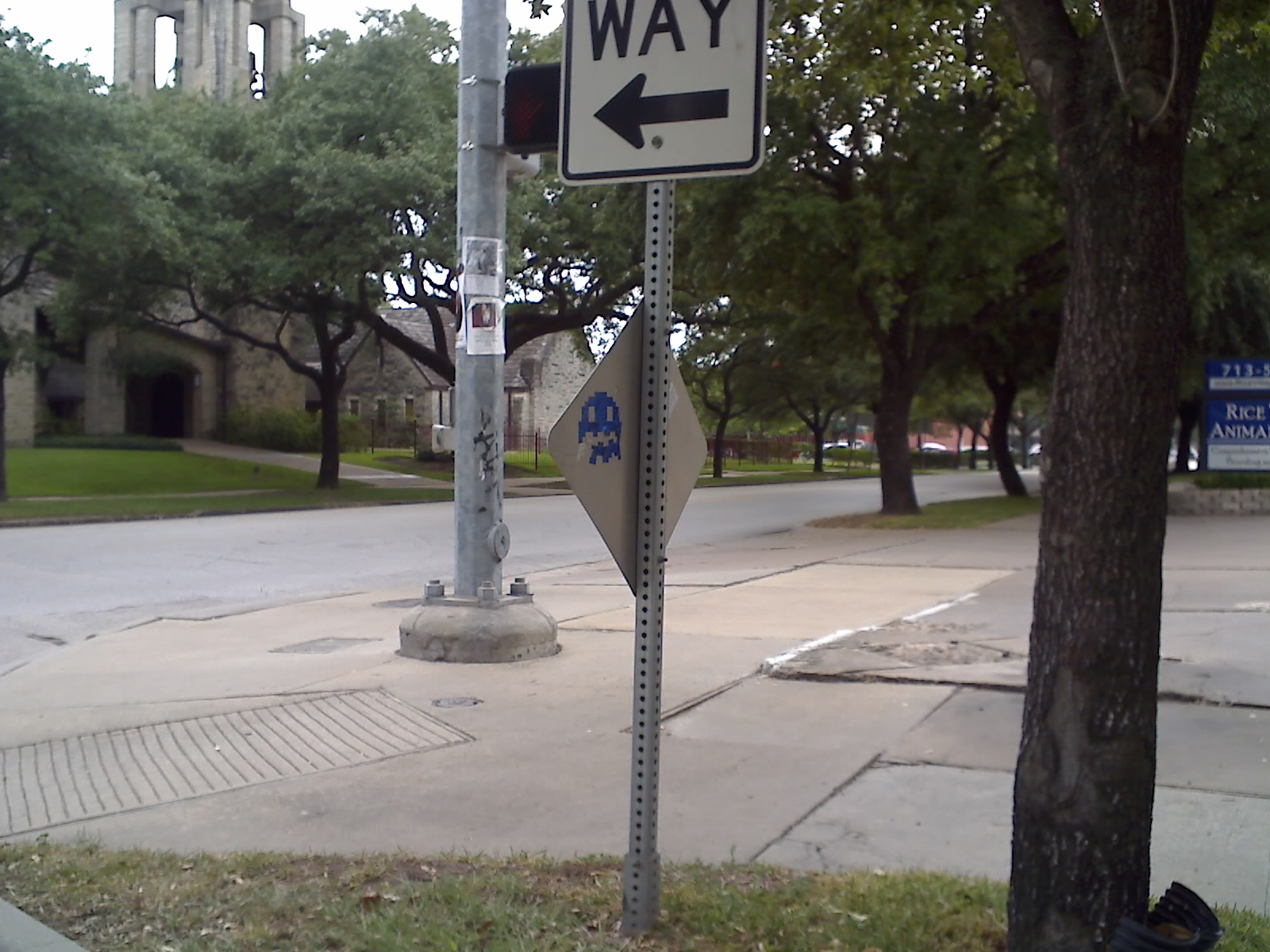 Another Blue ghost mosaic spotted across the street from Rice U at University and Greenbriar. I still haven’t found the elusive Pac-Man.