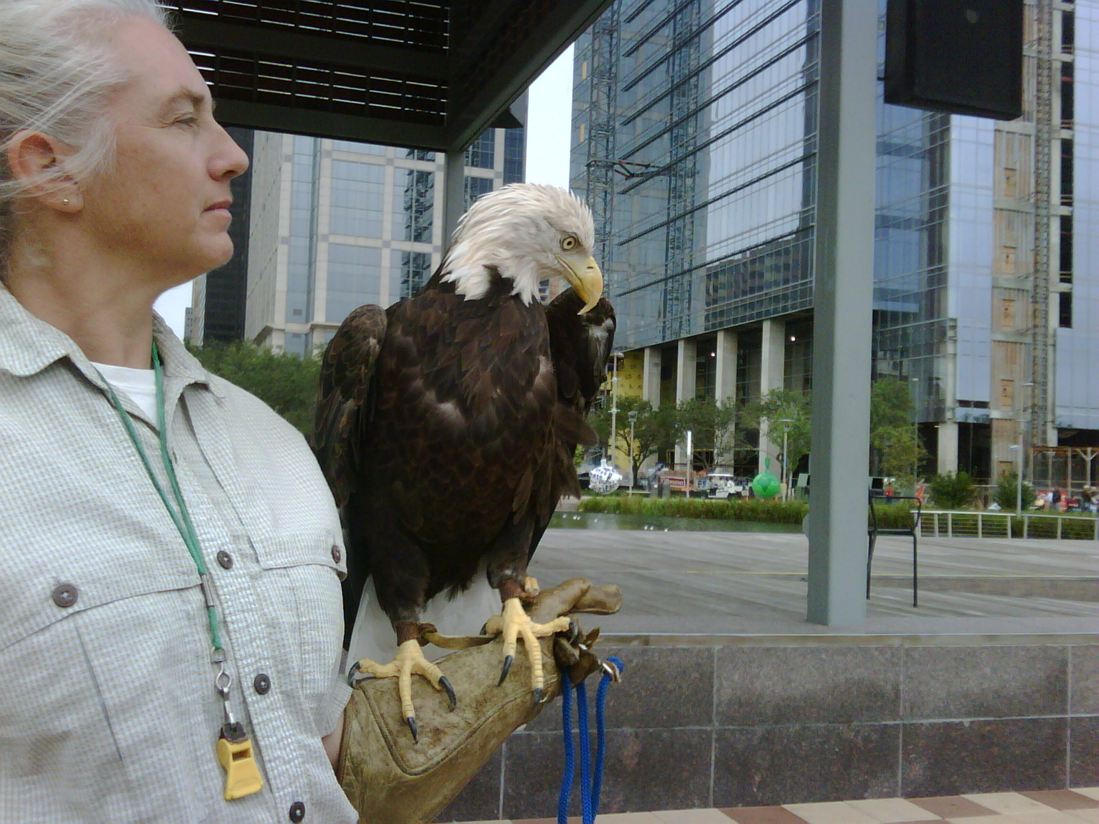 This 9 year old Bald Eagle was shot in his left wing several years ago and was brought to be cared and rehabilitated at the Last Chance Forever – The Bird of Prey Conservancy”.